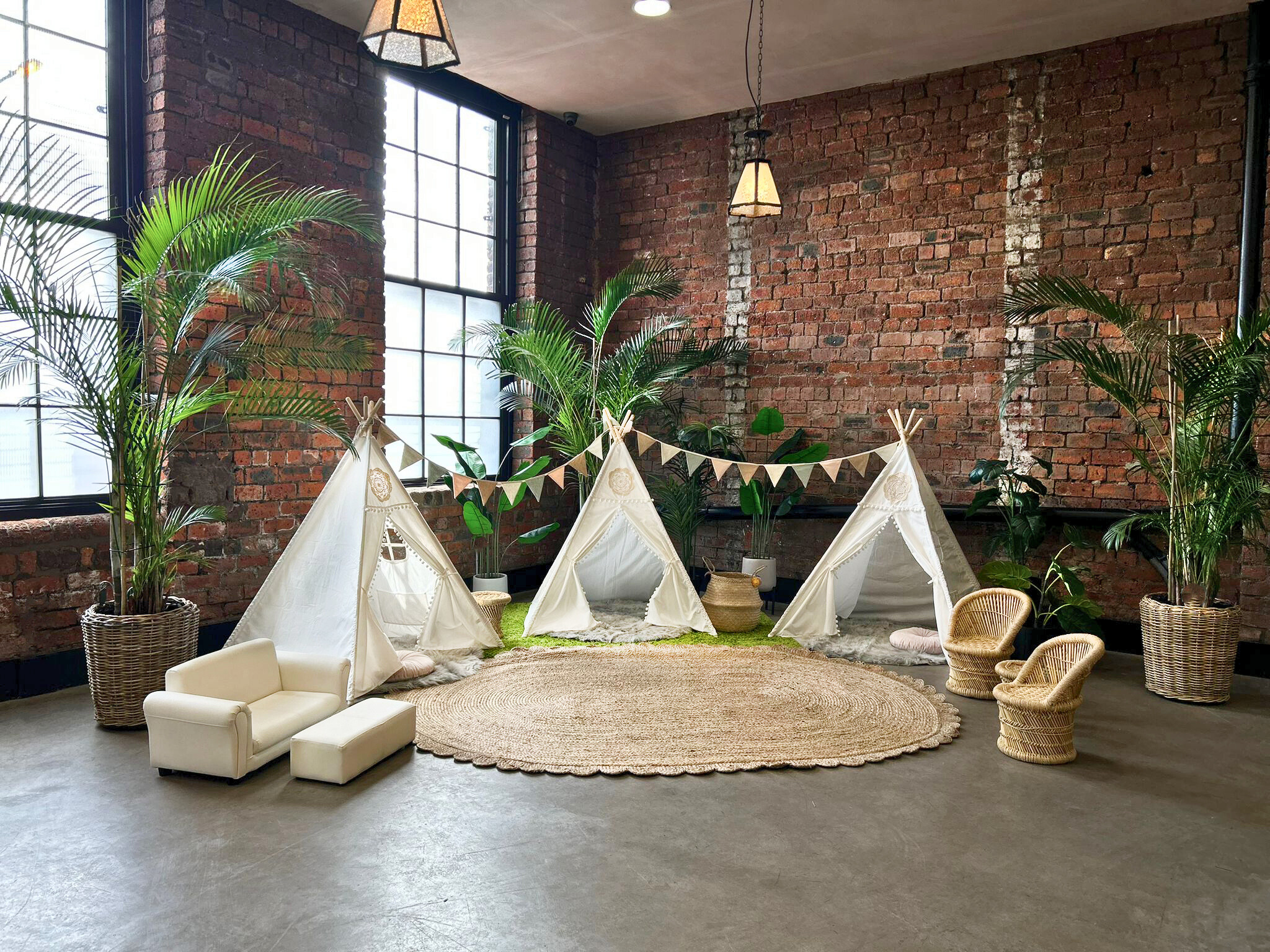 3x Teepee Tents / 3x Teepee Rugs & Pillow Sets / 2x Kids Wicker Chairs